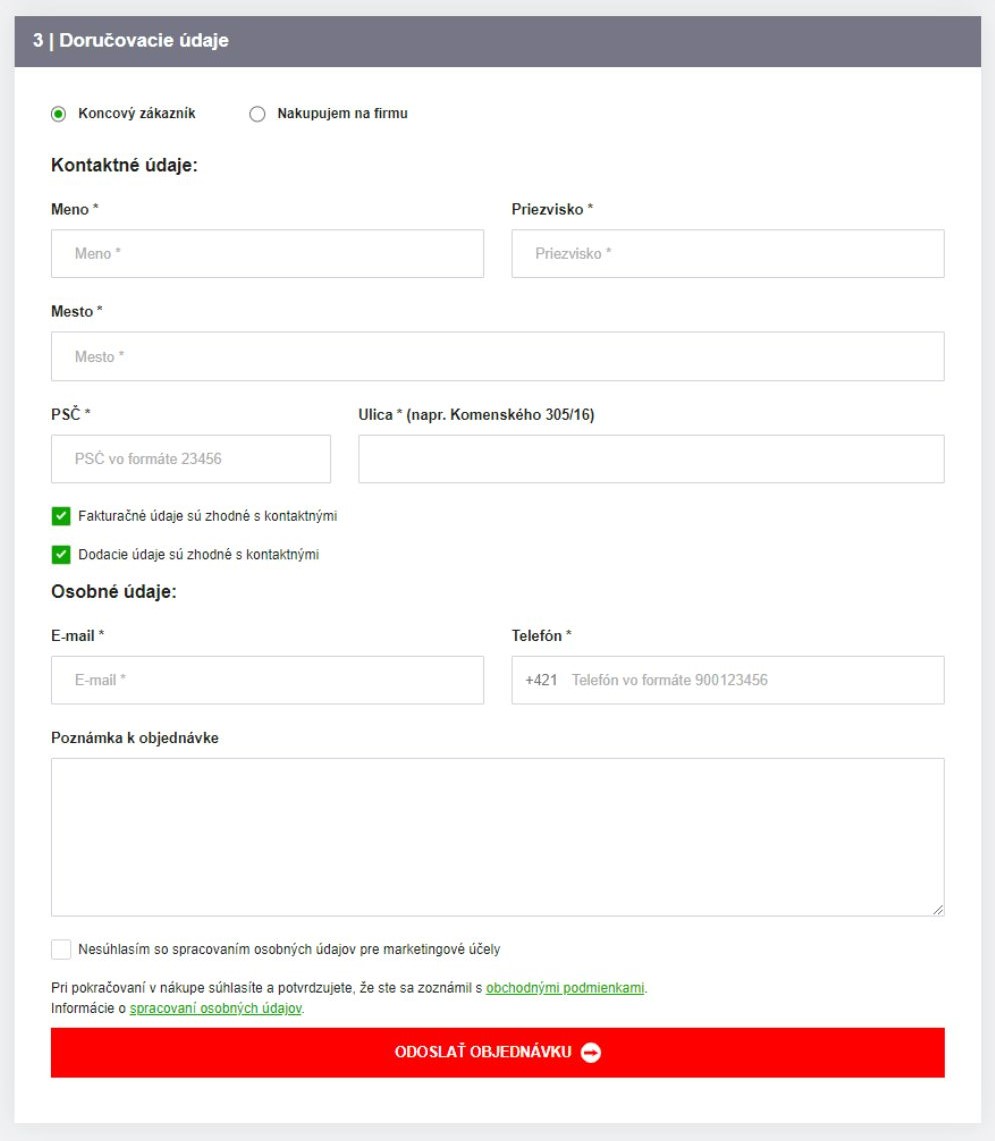 9. Nakoniec vyplňte doručovacie údaje a odošlite objednávku.