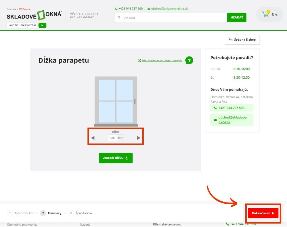 4. Do políčka pre dĺžku zapíšte údaj, ktorý ste zmerali na vašom okne. Ak neviete, ako parapet zamerať, pozrite si videonávod.