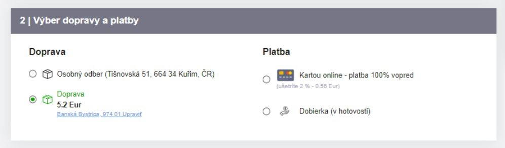 8. Potom už stačí len vybrať spôsob dopravy a platby. Prípadne si prečítajte viac informácií o možnostiach doručenia a o spôsoboch platby.