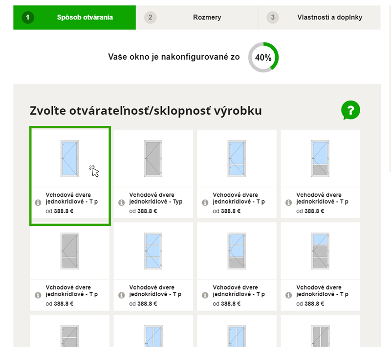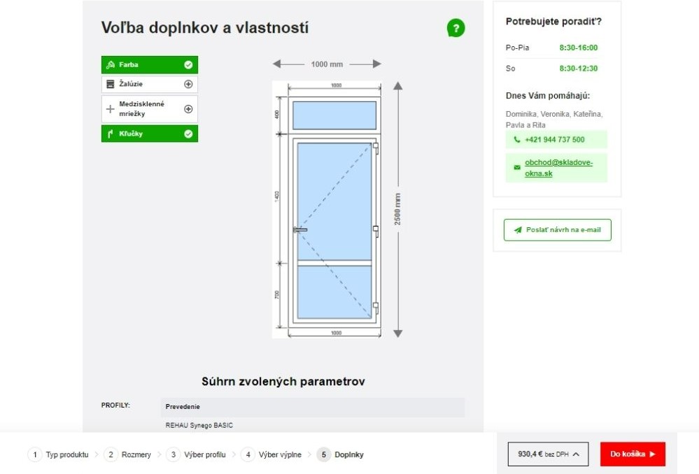 - V ďalších krokoch si vyberiete doplnky k dverám – žalúzie, prah dverí či medzisklenné mriežky.