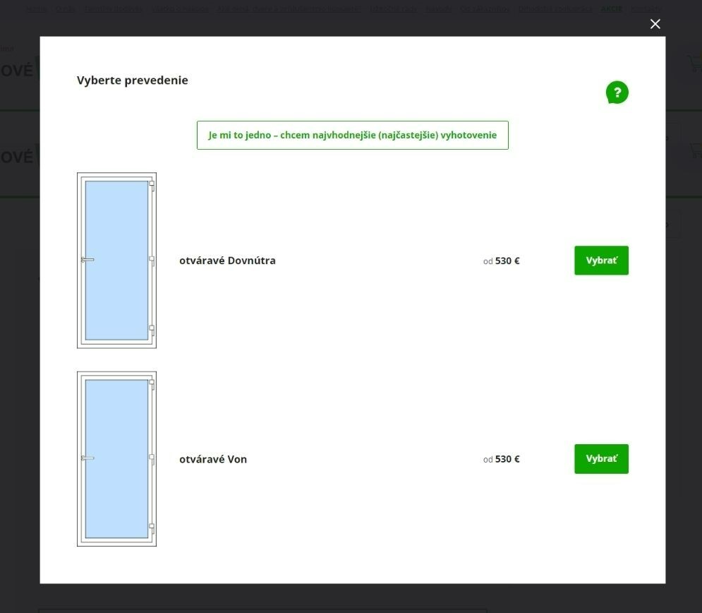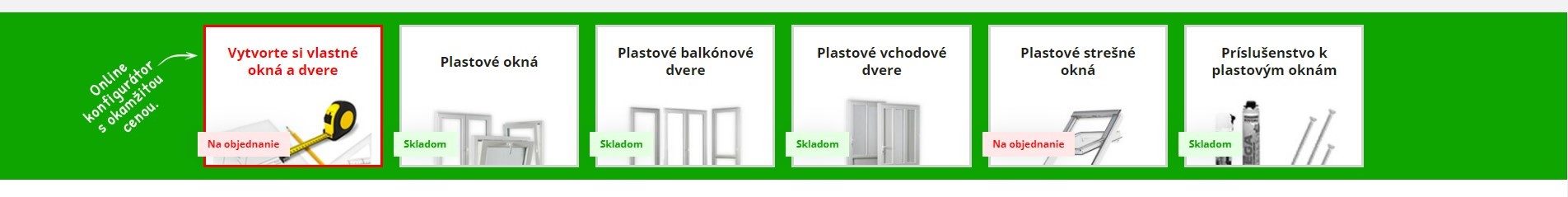 Nenašli ste v našej ponuke skladové vchodové či balkónové dvere podľa vašich predstáv? Nakonfigurujte si dvere podľa vašich rozmerov!1. V hlavnom menu kliknete na oranžové tlačidlo „Vytvorte si vlastné okná a dvere“.