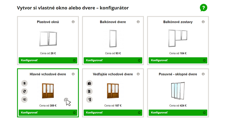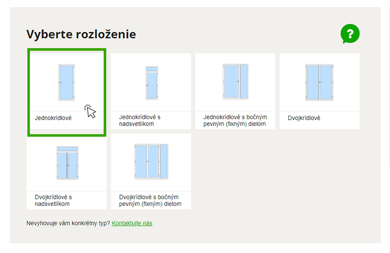 Rovnako postupujte aj pri konfigurovaní balkónových dverí, balkónovej zostavy alebo sklopne-posuvných dverí. Pri vedľajších vchodových dverí nám zašlite dopytový formulár pre vedľajšie vchodové dvere, ktorý nájdete po rozkliknutí na kólónku v menu konfigurátoru – Vedľajšie vchodové dvere.