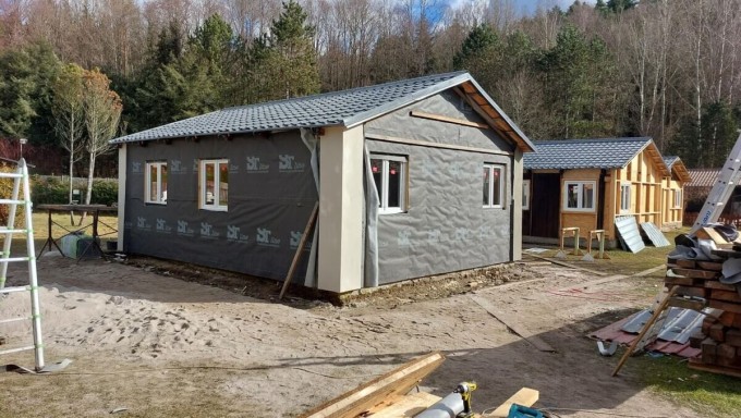 Do obce Drobenice u Bechyně sme dodávali do 6 rekreačných chát biele plastové dvere a okná v profilovom systéme PREMIUM klasik. Celkovo 40 okien (jednokrídlové výklopné a dvojkrídlové so štuplom) a 7 dverí (celopresklených s bočným svetlíkom) je osadených izolačným dvojsklom a kovaním od nemeckého výrobcu Winkhaus.