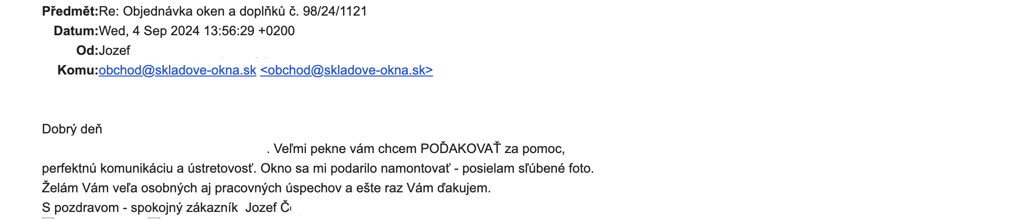 S pozdravom - spokojný zákazník Jozef Č.