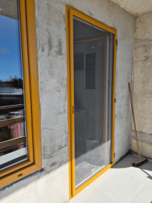 Súčasťou dodávky boli aj siete proti hmyzu v dekore Oregon, ktoré chránia interiér pred hmyzom, a štandardné hliníkové kľučky, ktoré dokonale ladia s celkovým vzhľadom dverí.