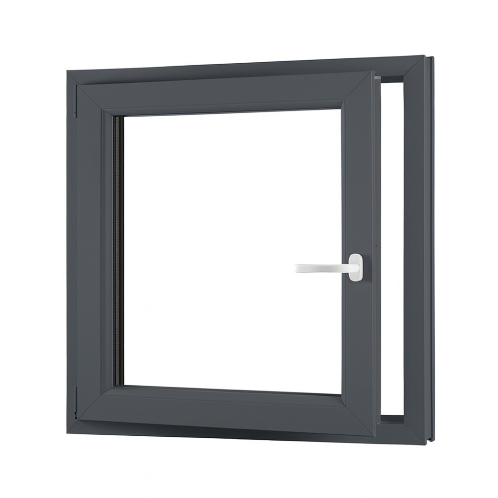 Toto jednokrídlové pivničné okno má stavebnú hĺbku 60 mm a je použité izolačné dvojsklo 4-16-4, Ug= 1,1 W/m²K. Koeficient prestupu tepla okna UW= 1,4 W/m²K, ide teda o okno určené do nevykurovaných priestorov. Pre obytné priestory odporúčame kúpiť okná profilovej rady Rehau. Okno vhodné do garáže, pivnice, záhradného domčeka alebo krytej vonkajšej kuchyne má rozmer 900 × 900 mm + podkladový profil 30 mm. Okno je z vonkajšej strany v antracitovej farbe (RAL 7016), z vnútornej strany je biele (RAL 9016). Dvojité tesnenie je v sivej farbe.