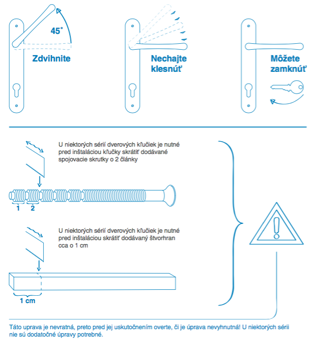 Upozornenie pre vedľajšie vchodové dvere – inštalácia kľučky a uzamykania