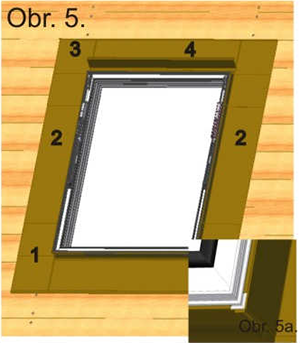 krok 5 ![]() Pri montáži lemovania najskôr vyberte rámové tesnenie obr. 5a. Postupne osaďte jednotlivé diely lemovania podľa očíslovania obr. 5. | krok 6 ![]() Po osadení jednotlivých dielov lemovania vložte späť rámové tesnenie obr. 6a. Dôkladná montáž tesnenia zabezpečuje dokonalé utesnenie okna. |