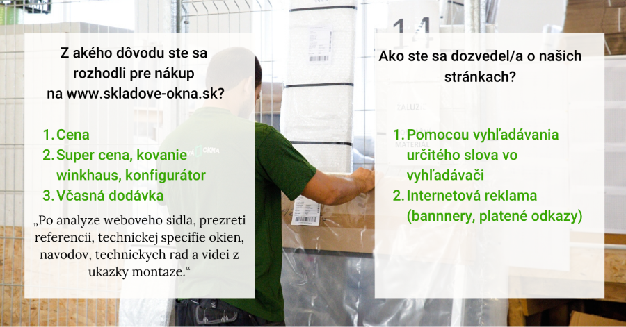 - 63,6 % ľudí nakúpilo tovar skladom a 36,7 % okien a dverí na mieru cez konfigurátor.