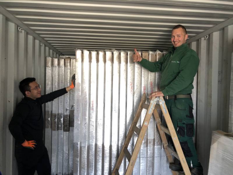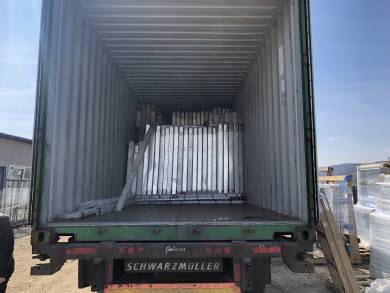 Naše skladové okná i dvere sme do kontajnera naskladali kus po kuse podľa detailného 3D plánu. Každé okno malo v kontajneri presne dané svoje miesto, aby sa do neho vošla celá zakázka a nedochádzalo k pohybom a poškodeniu behom dlhej cesty. Okna naši skladníci naložili v rekordne krátkom čase: už za necelé 2 a pol hodiny šofér odchádzal s nákladom.