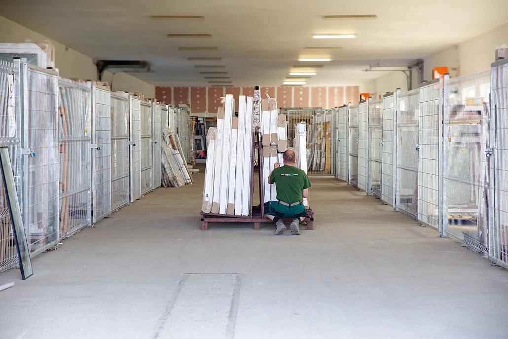 - sklad – na celkovej ploche 2500 m² sa nachádza 140 typov plastových okien a dverí v počte okolo 1000 kusov, všetko je prehľadne roztriedené do kójí, aby expedícia bola čo najrýchlejšia.
