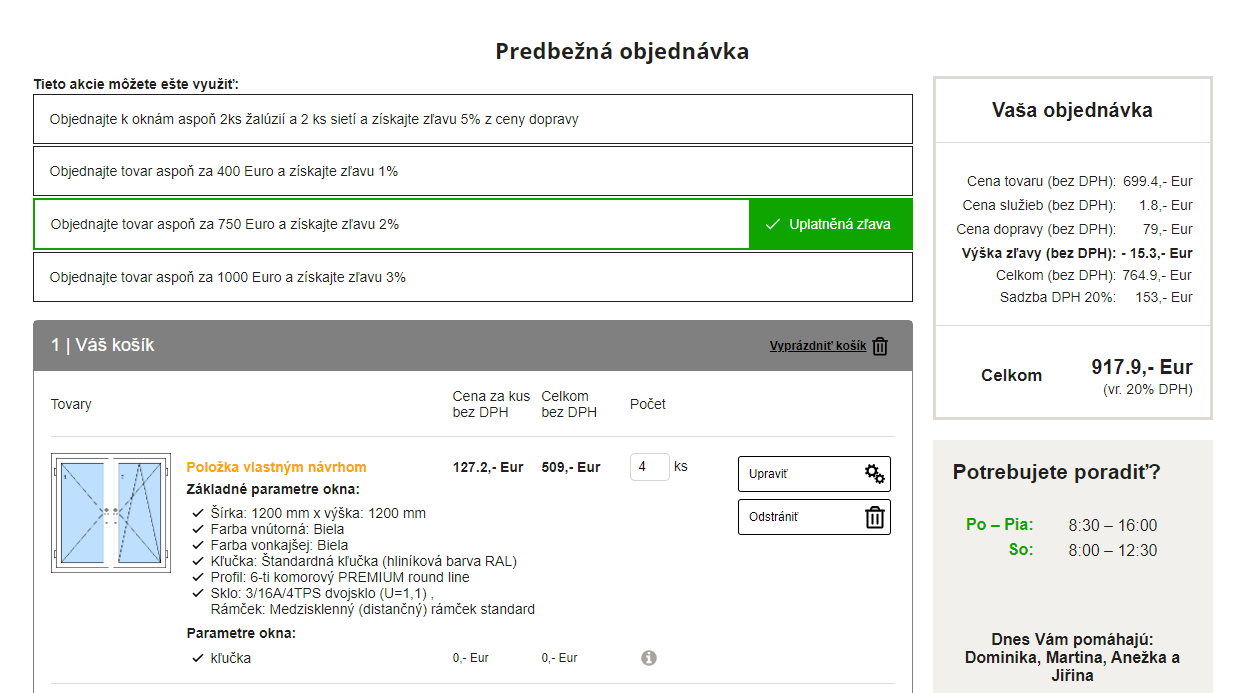 Či už vyberáte okná do celého domu alebo len do jednej miestnosti, s našimi zľavami ušetríte už pri nákupe nad 400 €. A