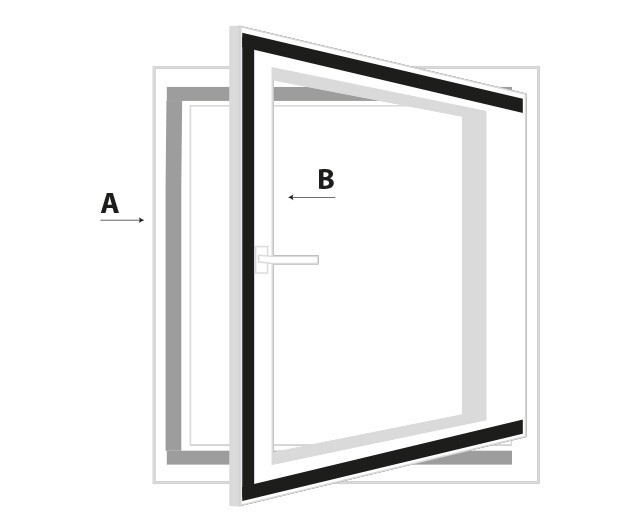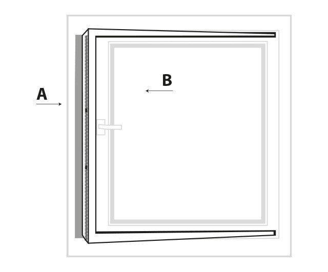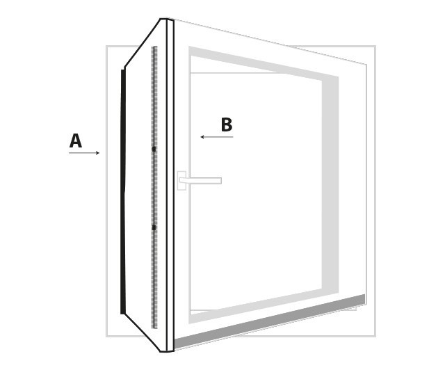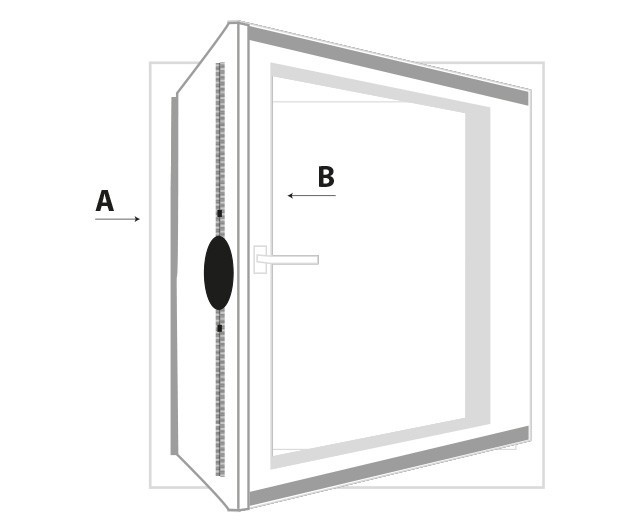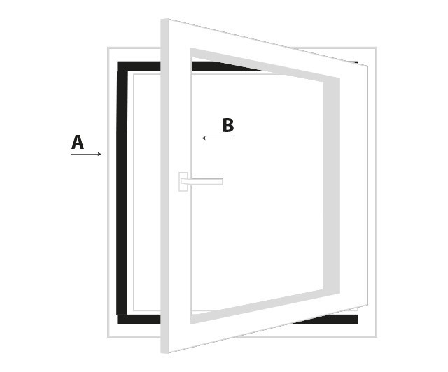 Rovnakým spôsobom pripevnite užšie stranu tesnenia (B) k okennému krídlu.