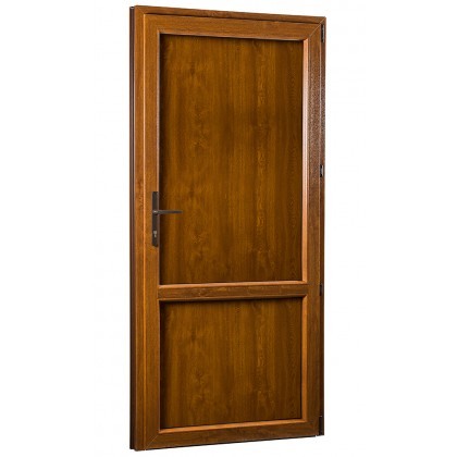 Jednokrídlové plastové vedľajšie dvere REHAU Smartline+ sú vhodné na vstup na záhradu, do garáže alebo ako zadný vstup do prevádzok a obchodov. Pri rodinných domoch sa dajú použiť aj ako klasické vchodové dvere, ale neodporúčame ich do verejných budov či bytových domov, kde je vyššia frekvencia pohybu. Oproti hlavným vstupným dverám, ktoré dodávame na objednávku cez konfigurátor, sú lacnejšie, ale nemajú široké krídlo a je možné ich otvárať iba donútra. Vedľajšie dvere ponúkame s rozmermi: šírka 98 cm, výška 208 cm, priechodná šírka je 84 cm.Dvere sú z vnútornej strany biele, z vonkajšej strany je použitá fólia v dekore zlatý dub. Súčiniteľ prestupu tepla dverami Uw=1.3 W/m²K.