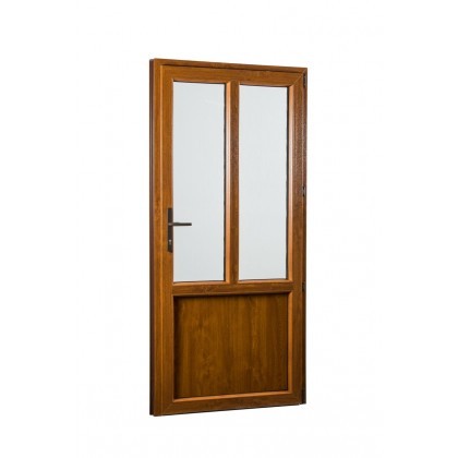 Jednokrídlové plastové vedľajšie dvere REHAU Smartline+ sú vhodné na vstup na záhradu, do garáže alebo ako zadný vstup do prevádzok a obchodov. Pri rodinných domoch sa dajú použiť aj ako klasické vchodové dvere, ale neodporúčame ich do verejných budov či bytových domov, kde je vyššia frekvencia pohybu. Oproti hlavným vstupným dverám, ktoré dodávame na objednávku cez konfigurátor, sú lacnejšie, ale nemajú široké krídlo a je možné ich otvárať iba donútra. Vedľajšie dvere ponúkame s rozmermi: šírka 88 cm, výška 208 cm, priechodná šírka je 74 cm.Dvere sú z vnútornej strany biele, z vonkajšej strany je použitá fólia v dekore zlatý dub. Súčiniteľ prestupu tepla dverami Uw=1.3 W/m²K.