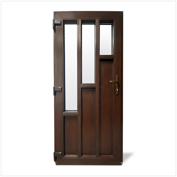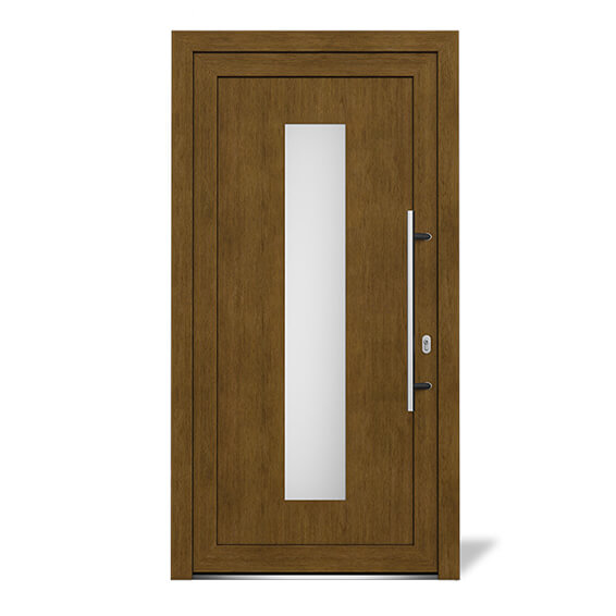 Skladom máme plastové hlavné vchodové dvere EkoLine v dekore zlatý dub. Ak potrebujete inú veľkosť, dizajn alebo farbu, objednajte si dvere prostredníctvom nášho konfigurátora. V ňom si môžete navoliť počet krídel (jedno, dve, prípadne fixný diel), spôsob otvárania (dovnútra, alebo von, pravé, alebo ľavé), rozmery, farbu profilu a klik/guľa a tiež máte možnosť si určiť, ktoré panely budú plné a ktoré presklené (na výber je z niekoľkých typov ornamentného zasklenia).Hlavné vchodové dvere predávame vo štyroch profilových systémoch