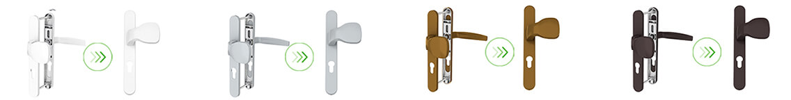 Pri vonkajších dverách do domu či bytu (v prípade pavlačových domov) je možnosť mať namiesto kľučky z exteriérovej strany guľu. Je to súčasťou ceny dverí. K bielym dverám dodávame kľučku (guľu) v bielej farbe, pre dvere v dekóre je tmavo hnedá kľučka (guľa). V prípade, že by ste preferovali kľučku (guľu) v bronzovej, alebo striebornej farbe, je to možné za príplatok. Súčasťou dverí je tiež stavebný zámok s 3 kusmi kľúčov.