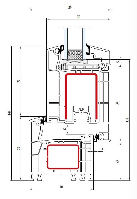Jedná sa o šesťkomorový profilový systém SYNEGO nemeckej spoločnosti REHAU AG + Co. V prípade, že zvolíte dvere s presklením, je štandardne dodávané trojsklo (sila 4 mm). Tepelný prestup celými vchodovými dverami Ud=0,89 W/m²K. V prípade že preferujete plné dvere s PUR doskou, je použitý panel o sile 48 mm. Potom je tepelný prestup celými vchodovými dverami Ud=0,83 W/m²K (platí pre jednokrídlové dvere).Hlavné vchodové dvere REHAU SYNEGO AD