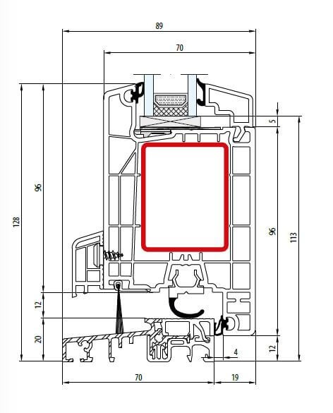Stavebná hĺbka rámu je 80 mm. Profil rámu vo verzii klasik s rovným krídlom je konštruovaný ako 6 komorový. Hlavné dvere PREMIUM a REHAU SYNEGO AD je možné dodať ako dovnútra, alebo von otvárateľné. Mají široké krídlo.