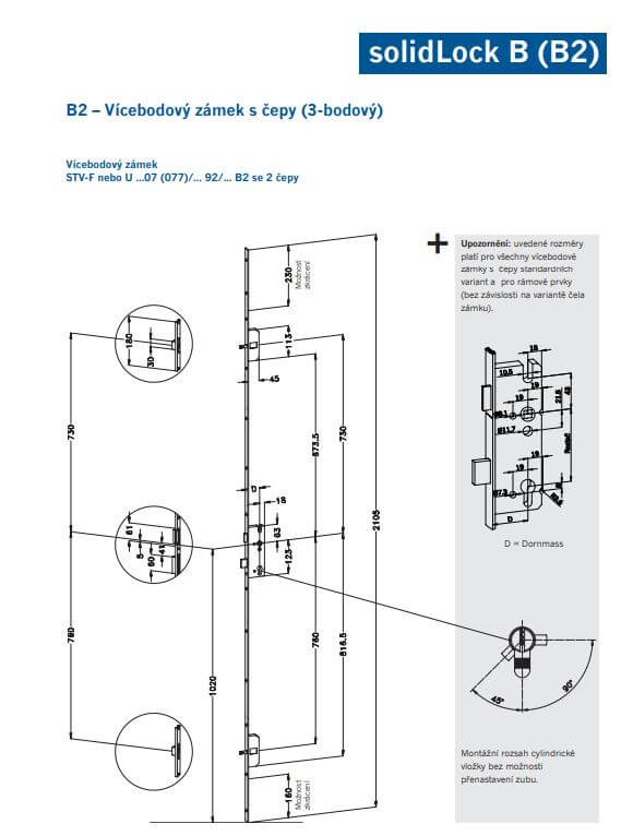 - G-U Secury MR2 - 3 bodová mechanická tŕňová rázvora, tŕne sa vysunú po otočení kľúča vo vložke.