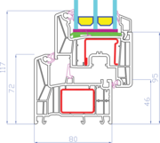- Štandardne sa dodáva trojsklo (Ug = 0,5 W/m²K), teplý medzisklenený rám, trojité tesnenie,